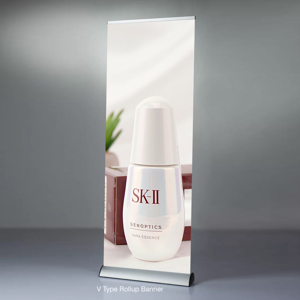 V-Type Rollup Stand- The best price-wide base roll-up banner stand,